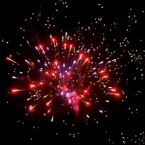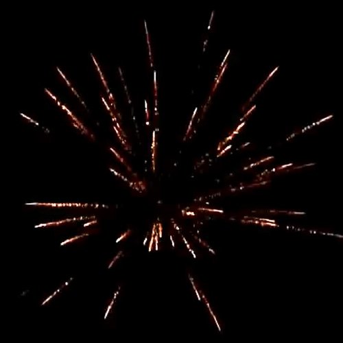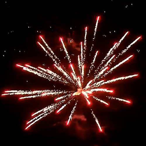 Разноцветные кометы разрываются сферами из: 1. синих и красных огней; 2. фиолетовых и зелёных мерцающих огней; 3. золотых форсов; 4-5. золотых форсов и красных огней, множеством трещащих сфер.